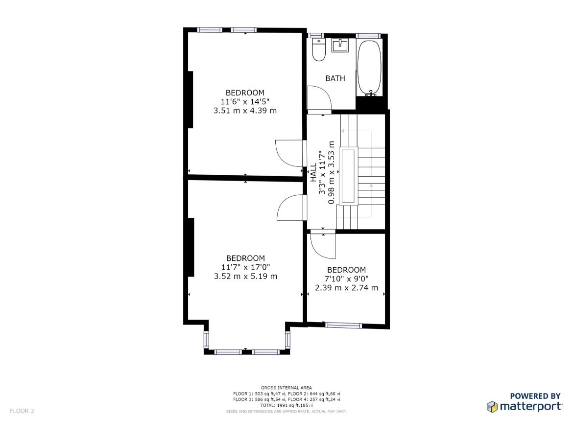 Bedroom 3.52 x 5.19 (11'6" x 17'0")