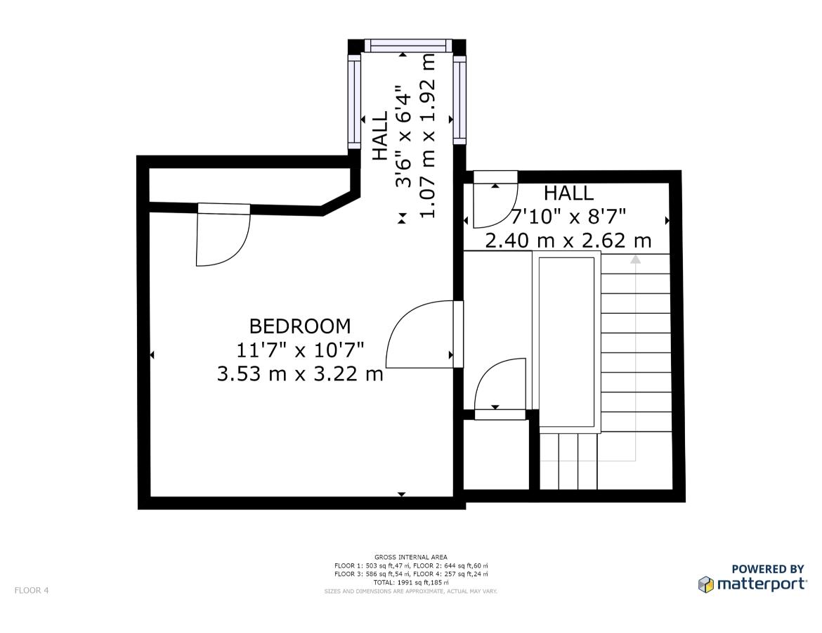 Bedroom 3.53 x 3.22 (11'6" x 10'6")