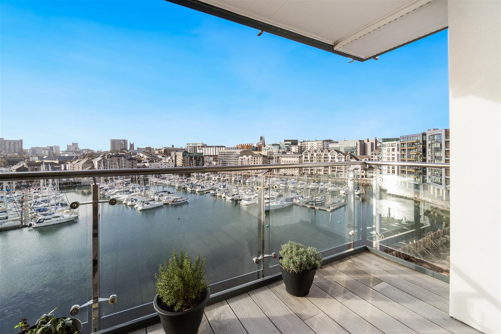 Positioned on the 6th floor the property has a video entry system giving access to the communal areas and lift. The open plan living room has an expanse of glass opening onto the balcony boasting outstanding views of Sutton Harbour. The modern fitted kitchen has an abundance of units and includes integrated oven, fridge/freezer, washer/dryer and dishwasher. There are two double bedrooms both with marina views, with the master suite enjoying a beautifully finished ensuite shower room, while the guest room is served by a spacious and equally well appointed family bathroom. There are also two sets of spacious storage cupboards off the hall and secure gated parking for one car.