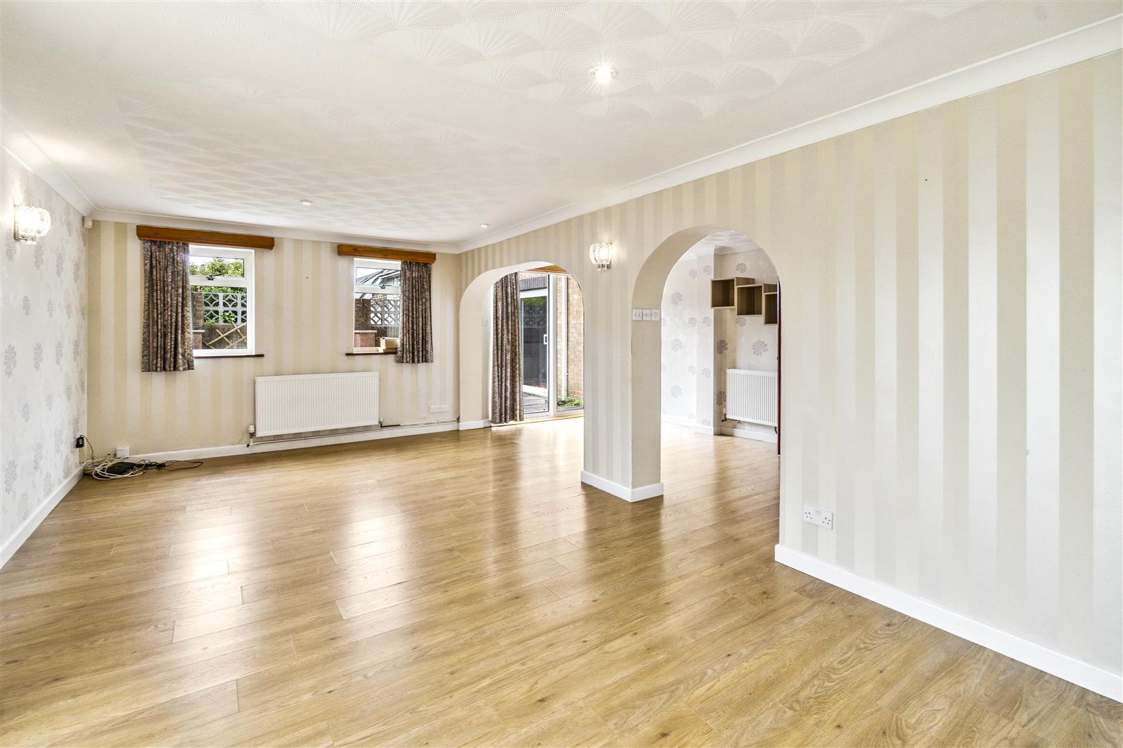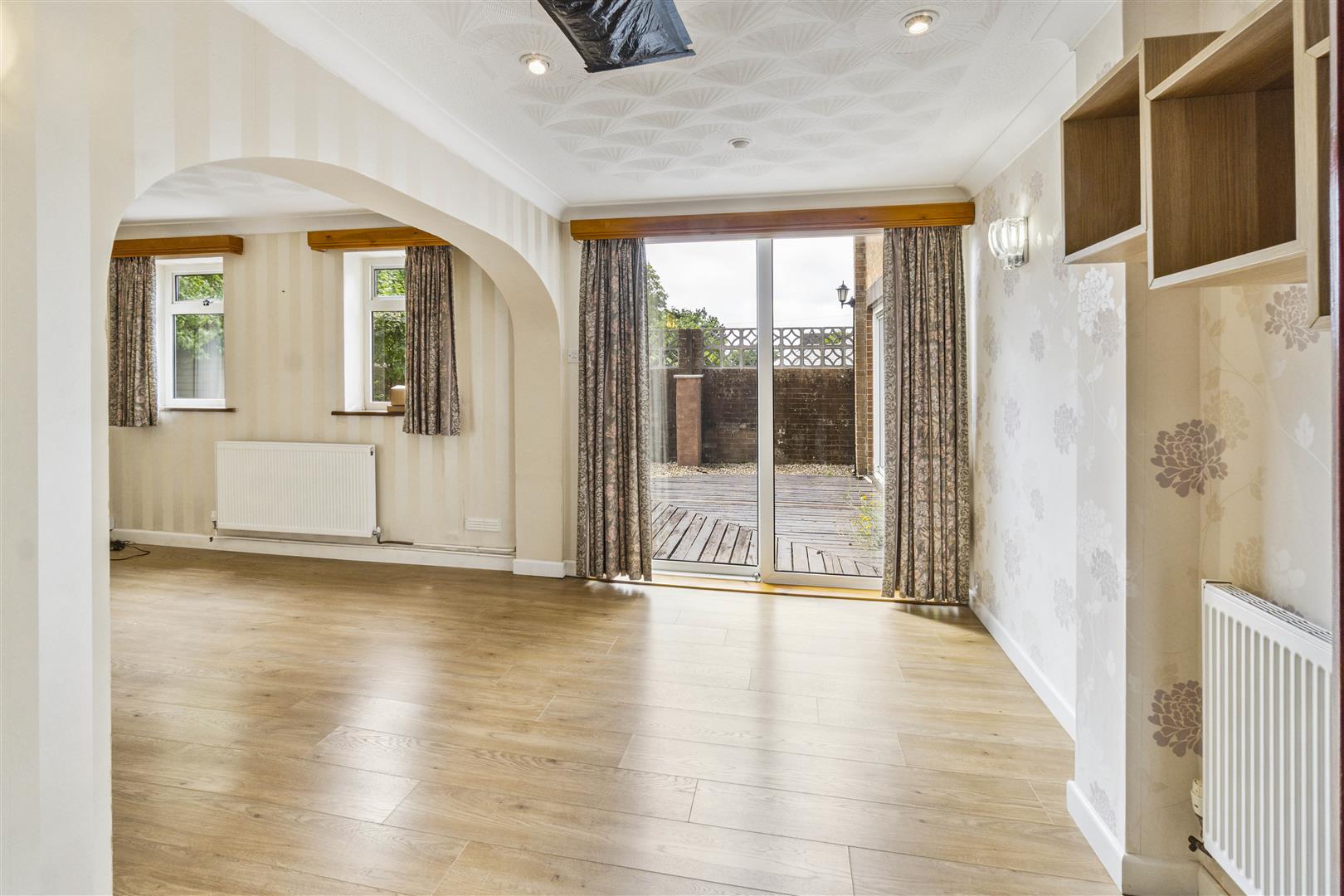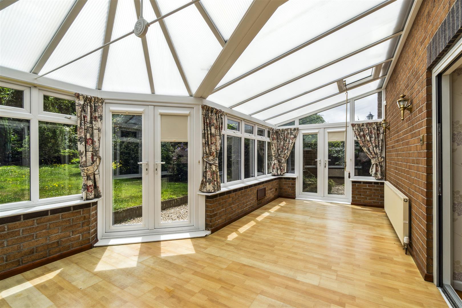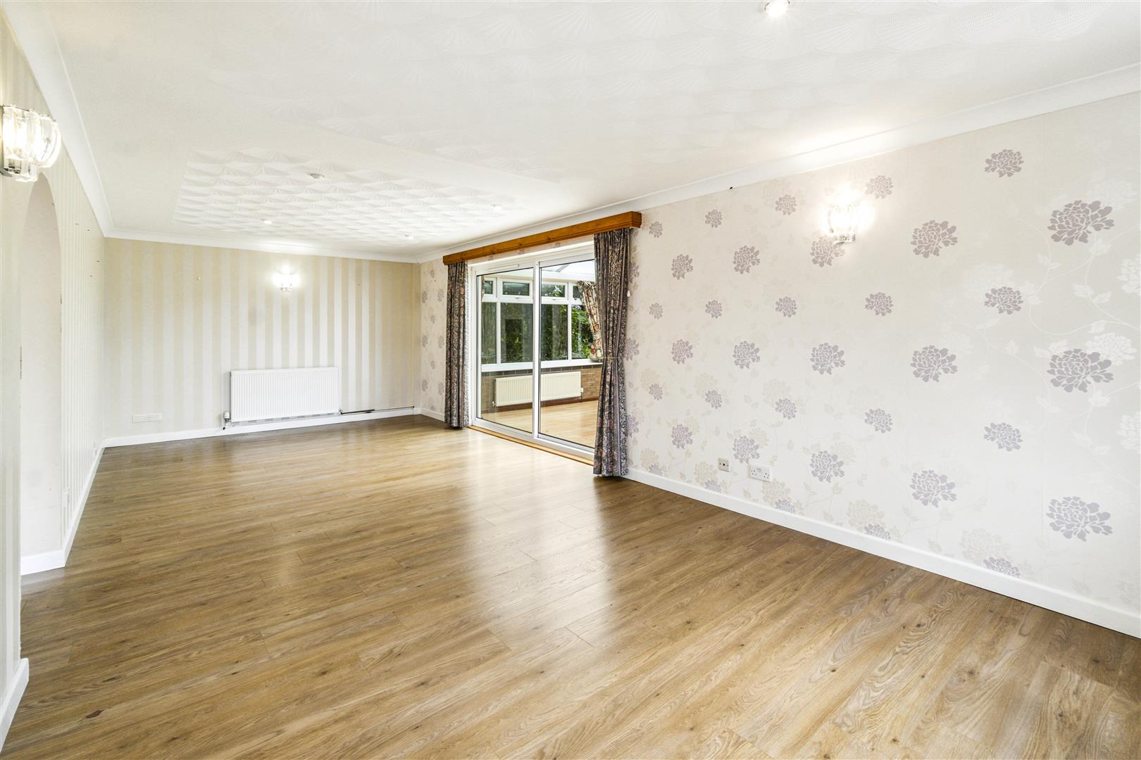 Upon entry, a welcoming hallway sets the tone for the home’s light-filled and spacious interior. The generous lounge flows effortlessly into a bright, airy conservatory ideal for both everyday living and refined entertaining. A separate formal dining room offers ample space for a large table and features sliding glass doors opening out to the expansive rear garden, creating a seamless indoor outdoor lifestyle.