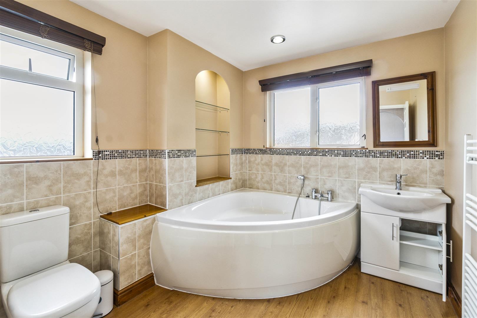 Upstairs, the first floor hosts four generously proportioned double bedrooms. The principal and second bedrooms benefit from en-suite shower rooms, while a family bathroom serves the remaining bedrooms.