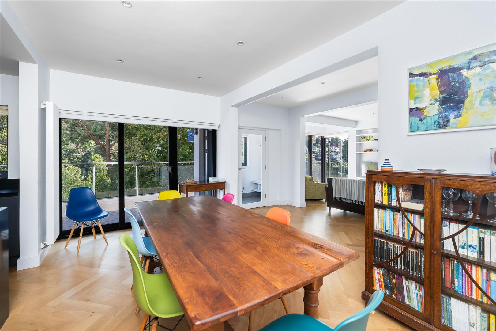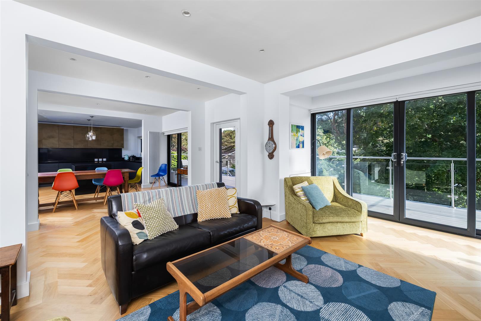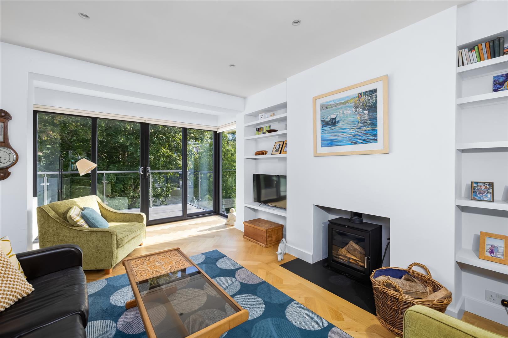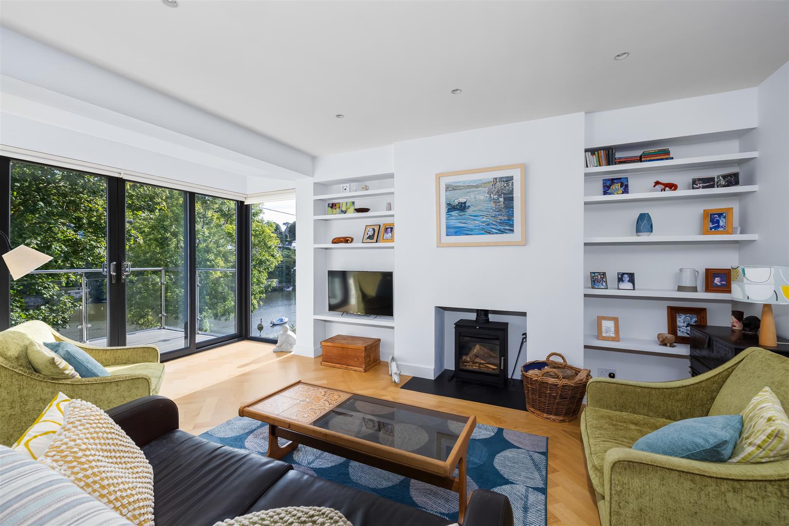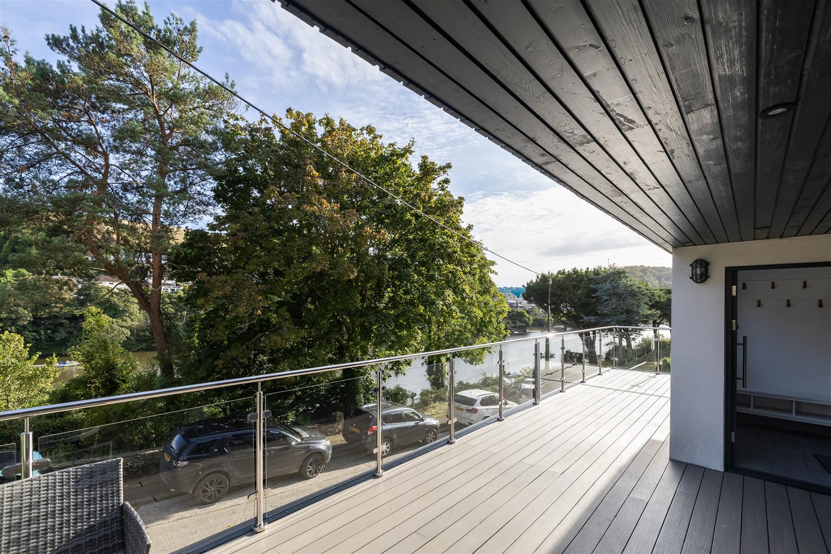 The open plan ground floor is separated into three distinct areas, firstly a beautifully finished kitchen with central island & integrated appliances, a dining area and a relaxing snug zone perfect for watching the ever changing river view, or enjoying a warm winter fire. This level has access to the spacious veranda with glass balustrading - a fantastic spot to enjoy a glass of your favourite tipple as the sun goes down over the Yealm.
